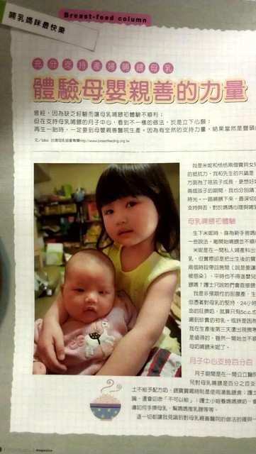 2012年6月號的「媽媽寶寶」雜誌裡,有一篇我分享的故事,主題是「體驗母嬰親善的力量」(260頁),