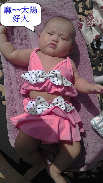 這天我帶了米妮穿不的泳裝給恬恬穿